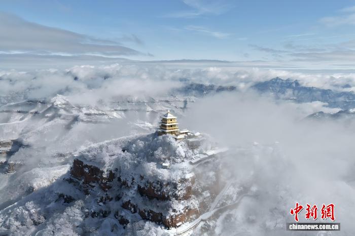3月1日,河北济源,雪后王屋山银拆素裹,千峰万壑都覆黑雪,云海翻涌好像瑶池,佳似1幅火朱冰雪绘卷。图为王屋山雪后景致宏伟。(无人机像片)邓邦辉 摄
